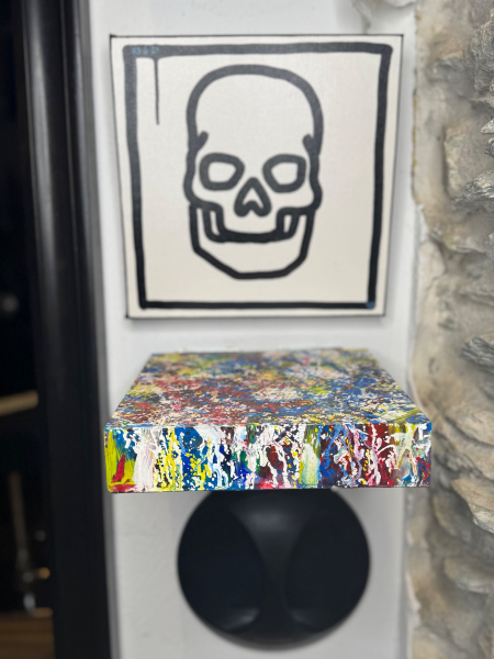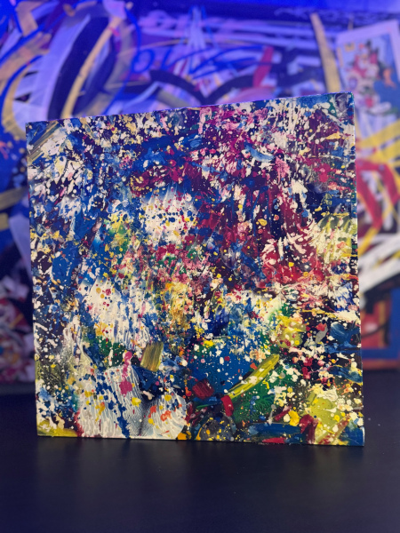 Dieses kunstvoll gestaltete Wandregal (25 × 25 × 5 cm) ist mehr als nur eine Ablage – es ist ein künstlerisches Statement mit einem überraschenden Detail. Die Vorderseite ist mit lebendigen Farbspritzern versehen, die Spontanität, Energie und kreative Freiheit verkörpern. Doch das Besondere liegt verborgen – auf der Rückseite wartet ein Geheimnis darauf, entdeckt zu werden…