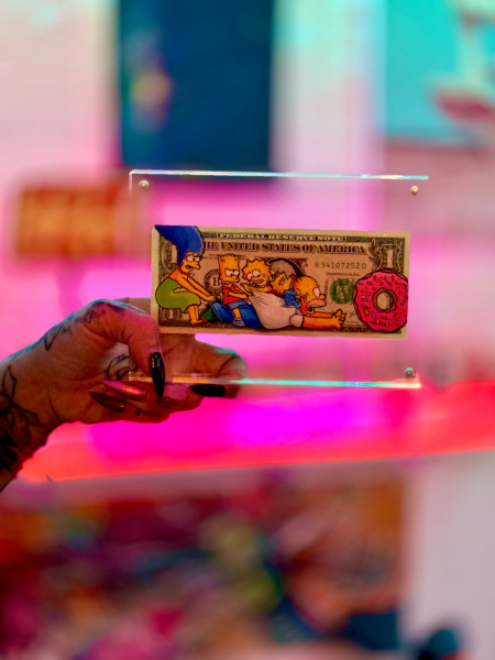 Handbemalter Dollar-Schein mit ikonischer Cartoon-Referenz