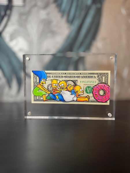 Dieser kreative Dollar-Schein aus dem Jahr 2024 zeigt eine humorvolle Szene voller Dynamik: Homer Simpson ist zu sehen, wie er seinem heiß begehrten Donut hinterherjagt, während seine gesamte Familie verzweifelt versucht, ihn aufzuhalten. Ein detailverliebtes und witziges Kunstwerk, das die turbulente Energie einer unvergesslichen Familieeinfängt – perfekt für Sammler und Kunstliebhaber, die das Besondere schätzen.