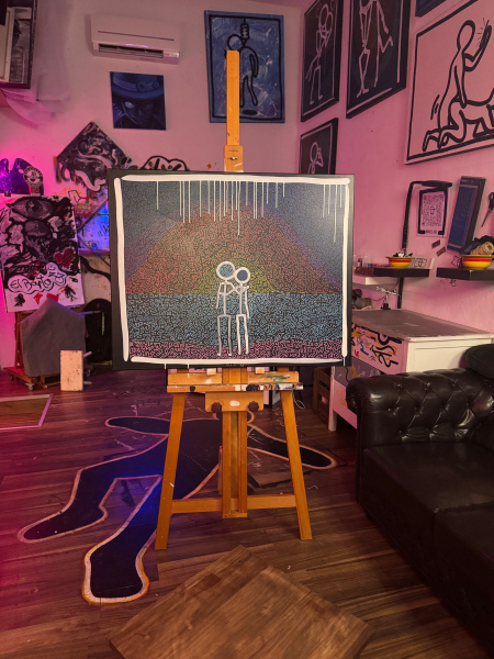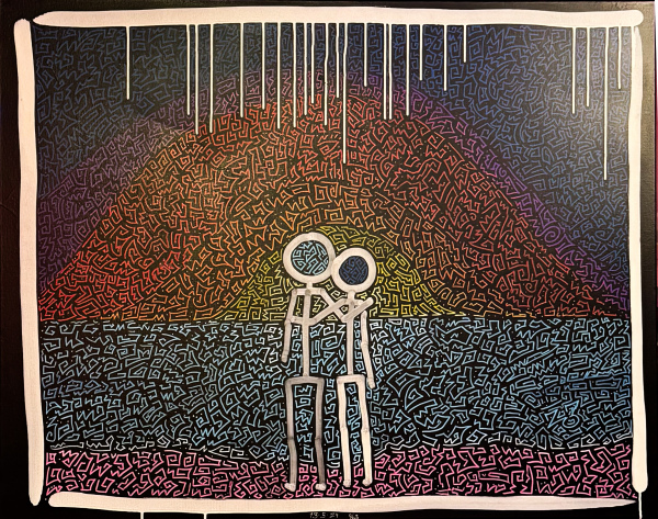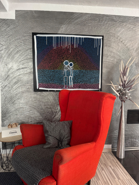 Dieses handgemalte Leinwandbild (100 x 80 cm, ca. 4 cm tief) fängt die Schönheit eines Strichmännchen-Paares am Strand ein, das einen Sonnenmoment am Horizont genießt. Der bewusst kindlich-minimalistische Stil mit einfachen Strichen und harmonischen Farben verleiht dem Bild eine unbeschwerte Leichtigkeit. Ein charmantes und einzigartiges Kunstwerk, das durch seine naive Einfachheit begeistert und zum Träumen einlädt.
