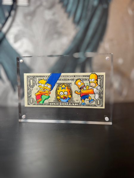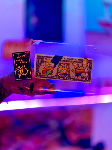 Handbemalter Dollar-Schein mit 24 Karat Blattgold und ikonischer Cartoon-Referenz